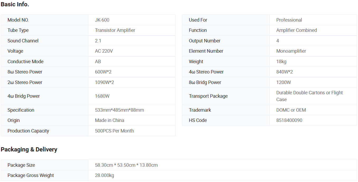 Advanced Domc Jk-600 Dual-Channel Power Amplifier Engineered for Enhanced Hi-Fi Audio Quality, Stable Power Output for
