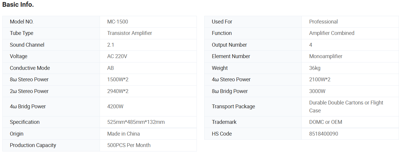 Domc Mc-1500 High-End Advanced Two-Channel Pure Power Amplifier - Audiophile Grade for Superior Hi-Fi Sound Reproductio