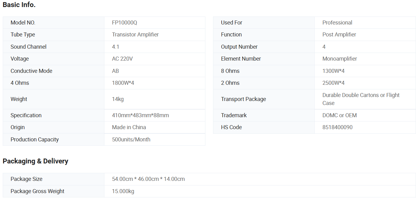 Domc Pure Fp10000q High-Power Class D 4-Channel Audio Amplifier 3600W×2 Bridged Power for Professional Sound System
