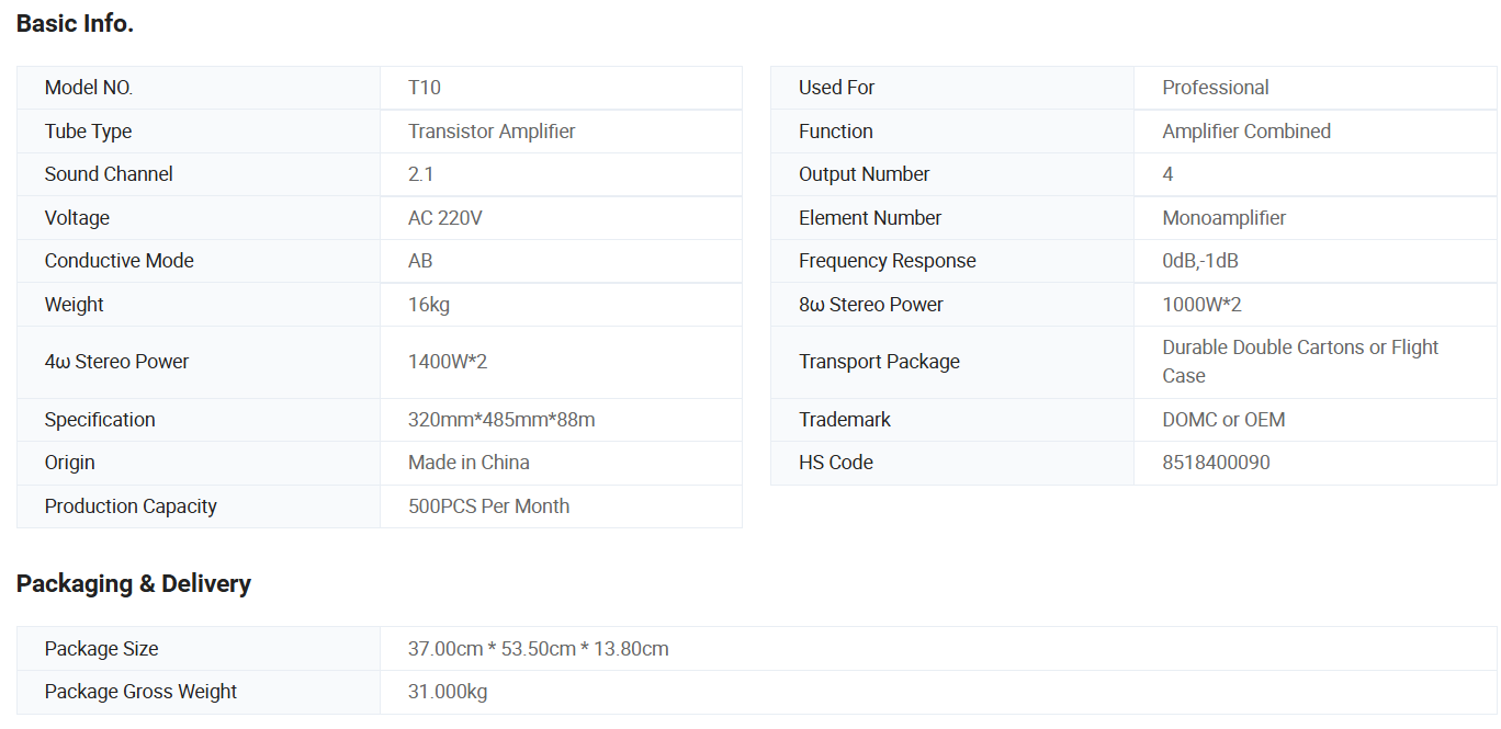 Domc T10 High-Performance 2-Channel Power Amplifier HiFi Stereo AMP for Superior Sound & Home Audio