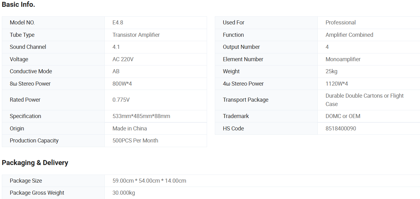 Domc E4.8 Four-Channel Pure Power Amplifier KTV Club Party Karaoke Stereo Church Sound System Class D Audio Power Ampli