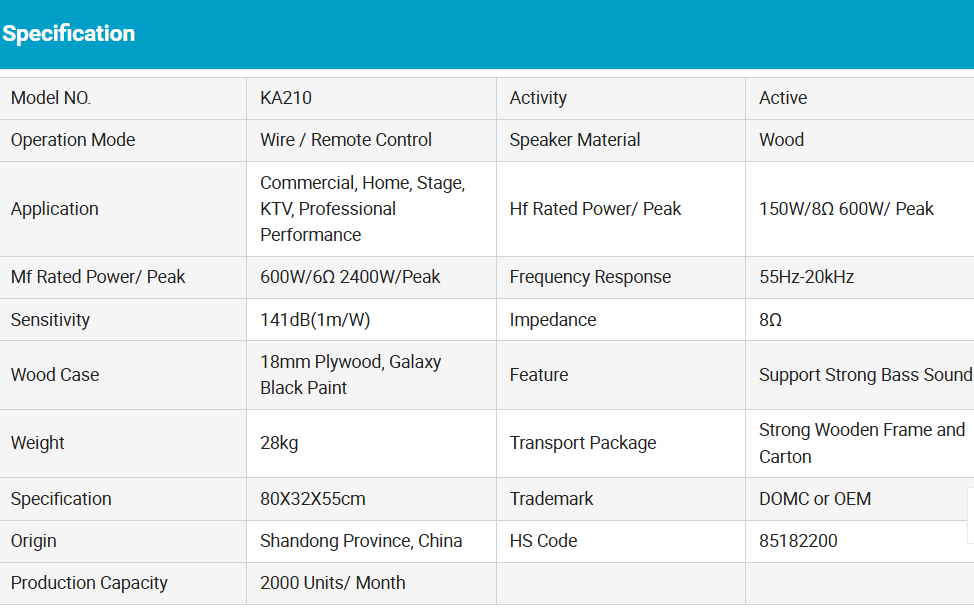Domc Ka210 High-Output Active Line Array Speaker-Powerful Sound Perfect for Stage Concerts