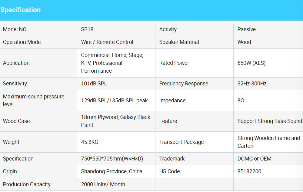 Dynamic Domc Sb18 Subwoofer 8ω Impedance 32Hz-300Hz Frequency Response 18 Inch 1000W Passive Subwoofer For Club Show Ch